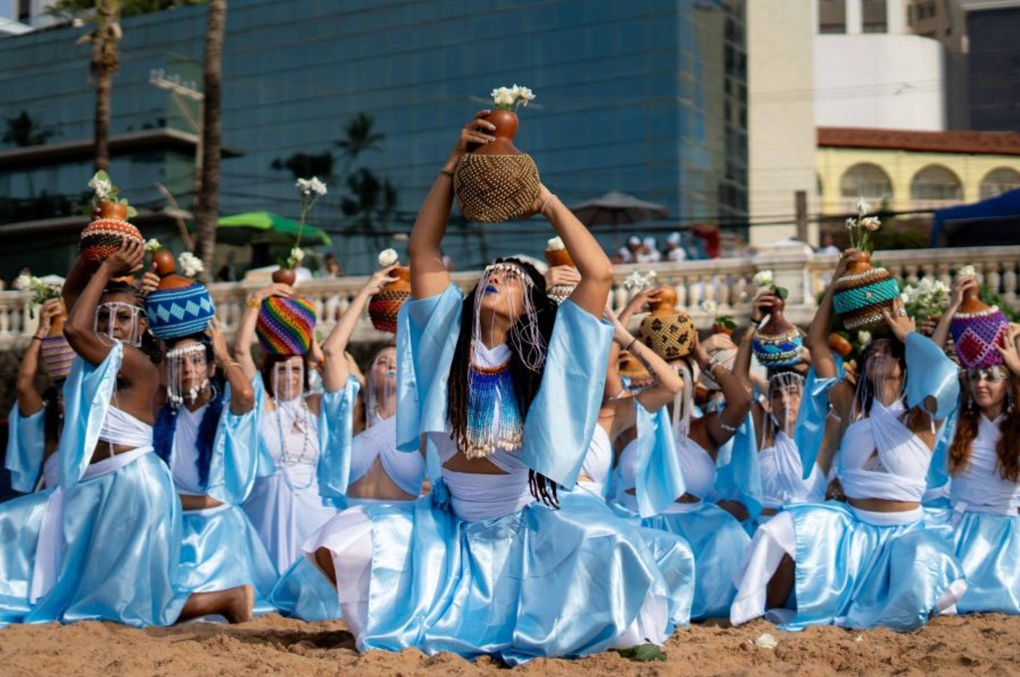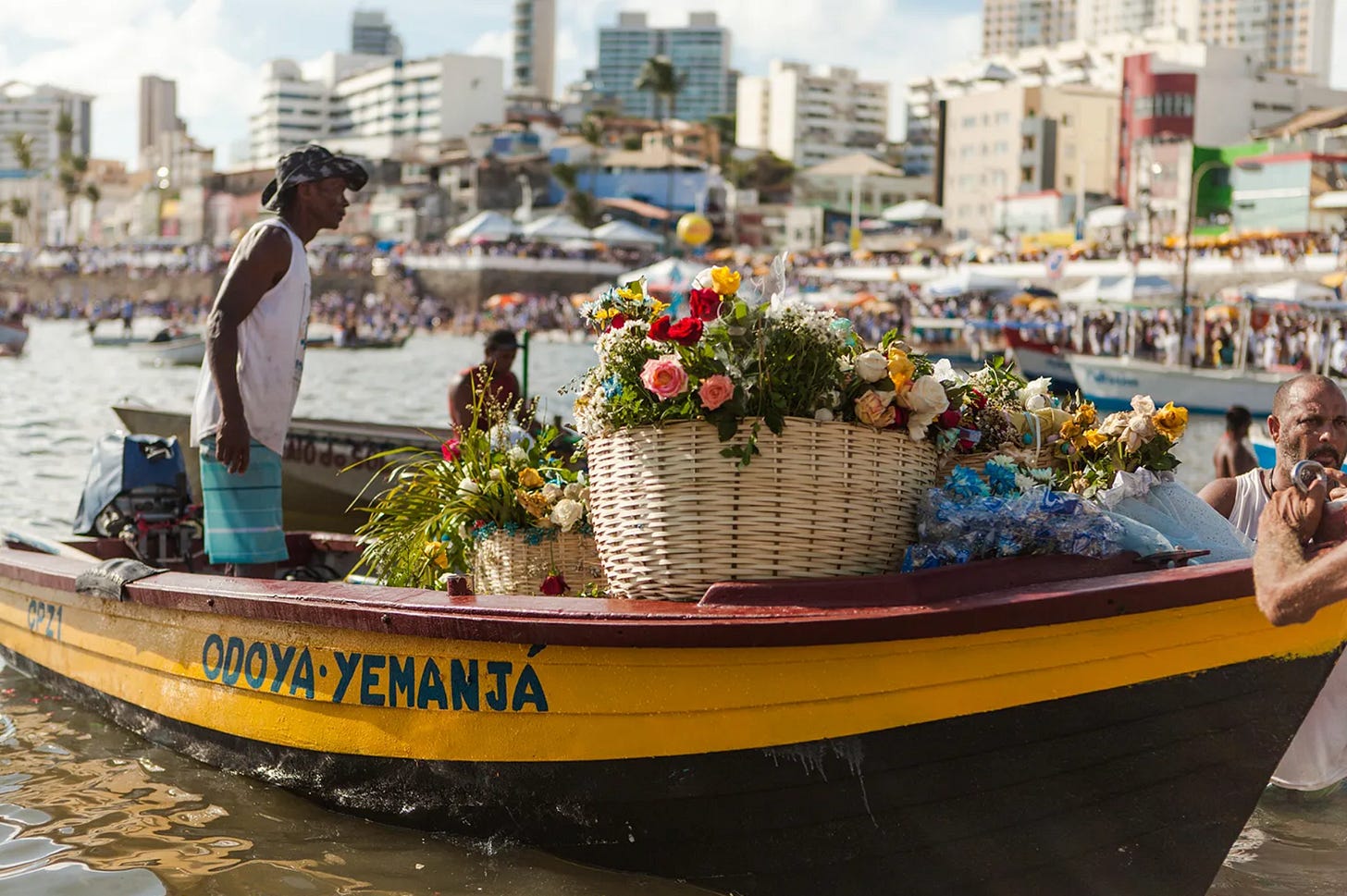 In Salvador, Bahia—where I was born and where my mother’s family is from—“Festa de Iemanjá” is recognized as Cultural Heritage and is considered the largest celebration of Afro-Brazilian culture in Bahia. For 103 years, on February 2nd, Iemanjá’s children have gathered to offer her gifts as a gesture of gratitude and a wish for abundance. The community sings, dances, and brings flowers, perfumes, mirrors, and other offerings to the sea.